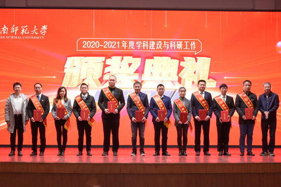 校党委书记蒋洪新、校长刘起军、校党委副书记周俊武、校纪委书记姚春梅、副校长唐贤清等为获表彰的科研标兵、青年标兵、管理先进集体和先进个人颁奖。长江学者刘铁芳教授、国家“优青”获得者廖洁桥教授和外国语学院院长曾艳钰教授分别致颁奖词。