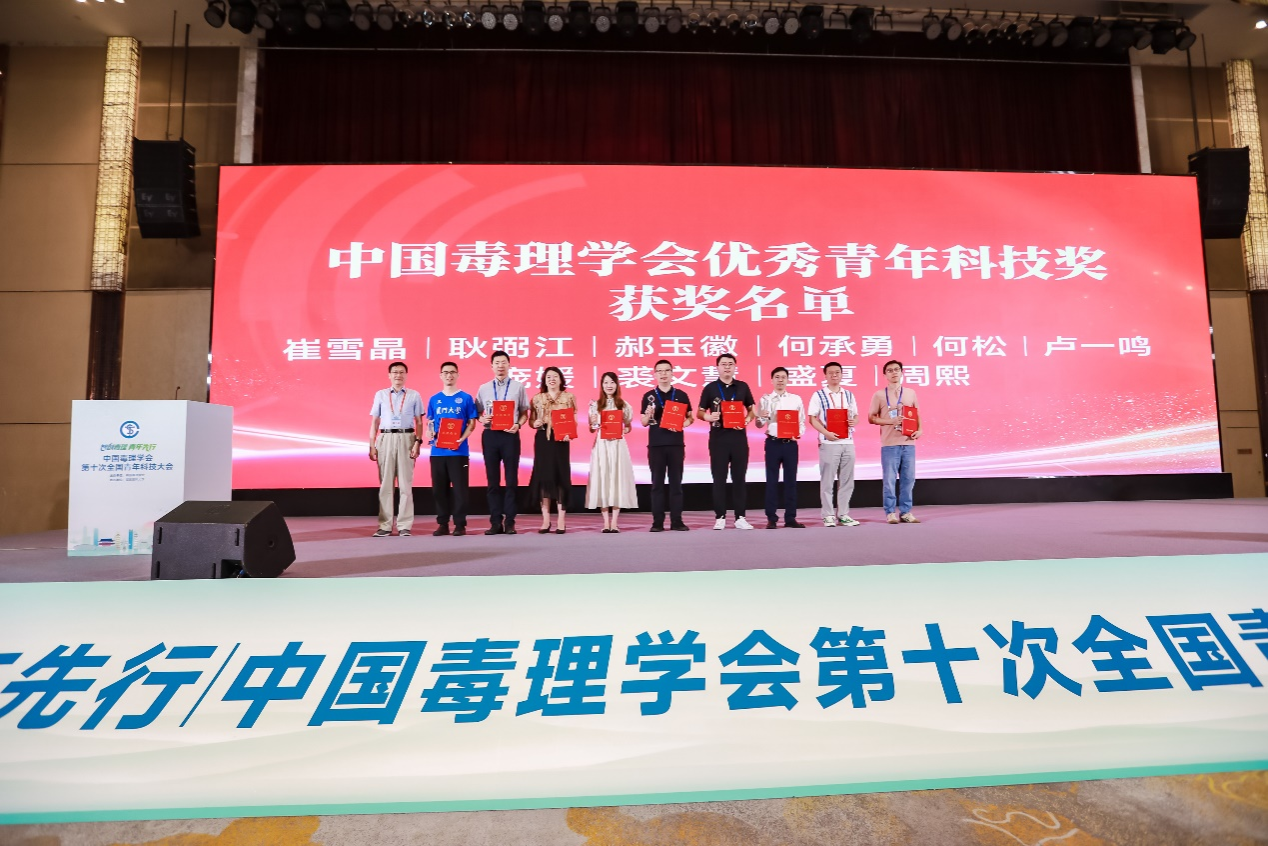 6月21日,在福建福州举行了中国毒理学会第十次全国青年科技大会,会上表彰了2025年度中国毒理学会优秀青年科技奖获奖者,我院周熙老师(图右3)荣获该奖项。