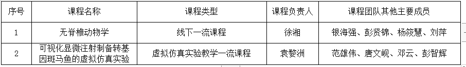 近日,教育部官网发布了《教育部关于第二批国家级一流本科课程认定结果的公示》,我院共有两门课程成功入选。其中,徐湘教授主讲的《无脊椎动物学》被认定为国家级线下一流本科课程,袁婺洲教授主讲的《可视化显微注射制备转基因斑马鱼的虚拟仿真实验》被认定为国家级虚拟仿真实验教学一流课程。截止目前,我院共获评国家级一流本科课程5门。