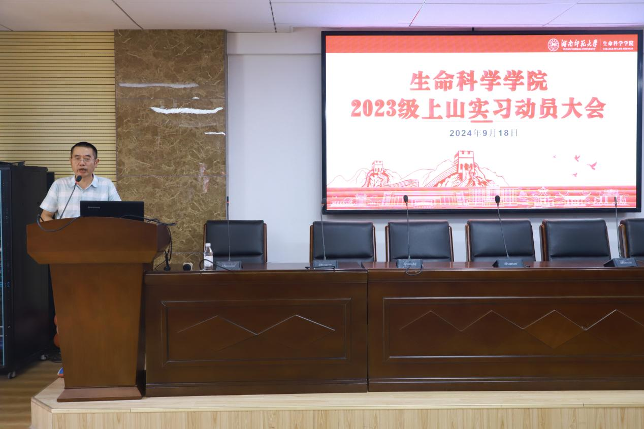 (通讯员 蒋梦瑶 唐雨楠)9月18日中午,sunbet申搏于B栋307学术报告厅举行2023级上山实习动员大会。生科院副院长兼生物学实验中心主任陈湘定,动物学指导老师莫小阳、李建中、周琼、蔡渠、彭威、王娟、王苏吉,植物学指导老师丛义艳、张国进、潘柏含、旷仁平、王鹏,教务办黄晶,本部学工办吴晴以及树达学工办王砚茹出席此次会议。莫小阳担任此次会议主持人。