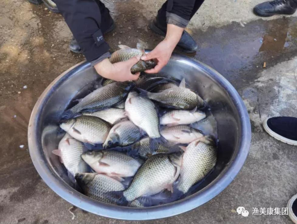 在两个品种的鲫鱼打网,转桶装、盆装、称重等几个环节过后,其他类型鲫鱼已经有非常明显的鳞片松动,而合方鯽仍然鳞片紧实,活力很好!