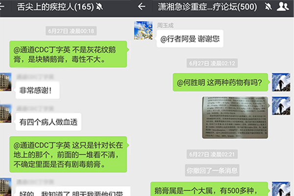 “从来没有祈求过上天,这次真的求你了,爸爸还年轻……”在陈作红教授的微信中,我们看到一名男子的绝望与不舍。陈作红教授赶赴现场进行鉴定,为医院提供方法治愈他的父亲。“您的孜孜不倦,才会有我父亲的第二次生命……”转危为安后那语无伦次的感谢让他心中的激动与后怕跃然纸上。“舌尖上的疾控人”“潇湘急诊重症”......一个个用于提供帮助的微信群,一句句认真严谨的解答,一个个不眠不休的夜晚,熬红的双眼换回的是一场场的新生。