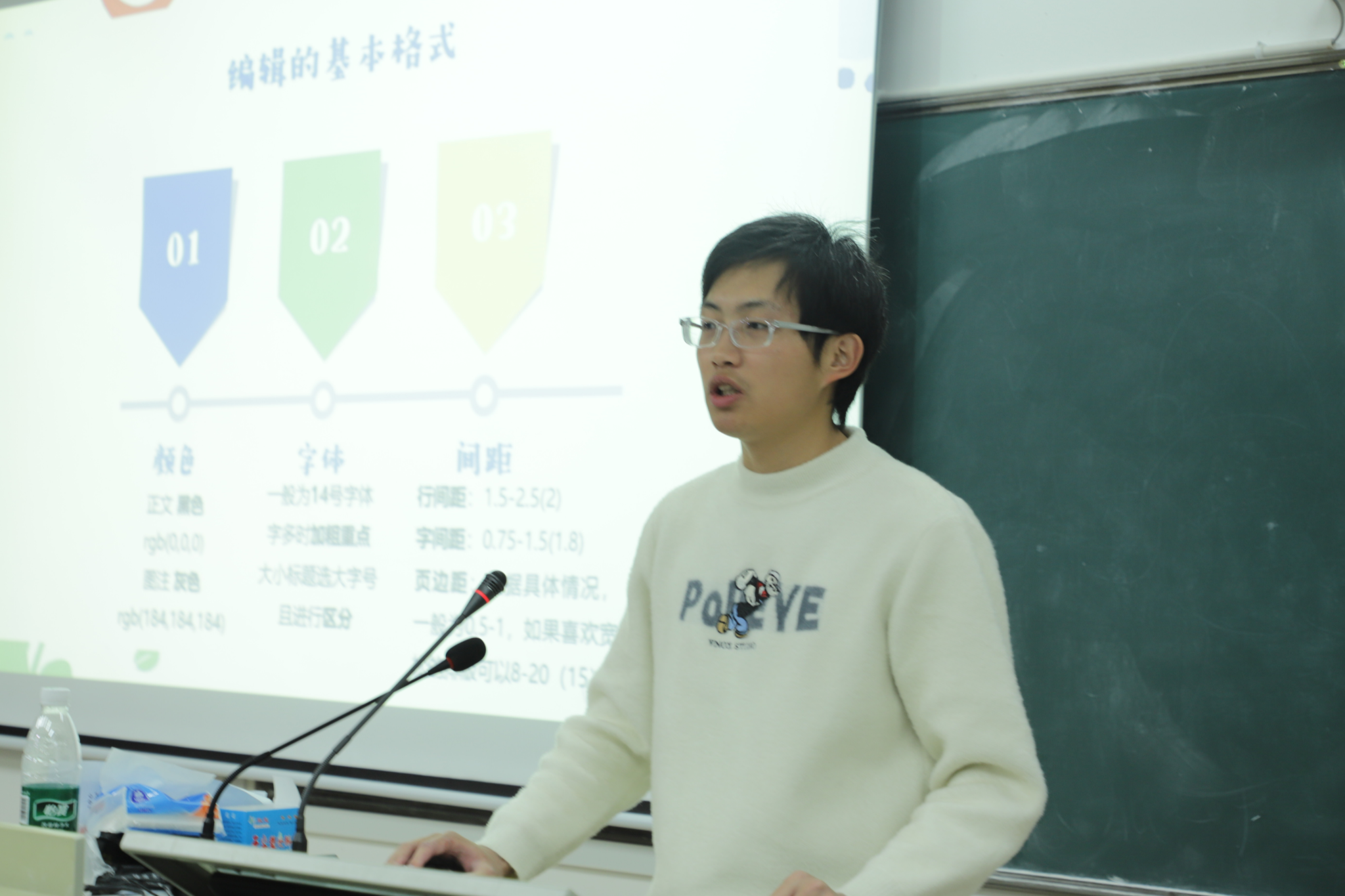 此次培训包括微推制作和公众号运营两个部分。第一位主讲人从微推制作工具的功能展开讲述,向学员们演示如何使用可画设计完成微推封面和往期推荐的制作,并进行具体操作指导。第二位主讲人向学员们讲解推送的组成部分,明确微信推送的基本要素包括主题、标题、文字稿和图片,并对如何利用秀米进行微推排版与格式编辑进行说明。第三位主讲人从公众号的后台操作和申请个人公众号的流程两个方面入题,向学员们介绍后台的运营界面和运营流程,并重点讲解公众号的封面、标题和摘要要求。