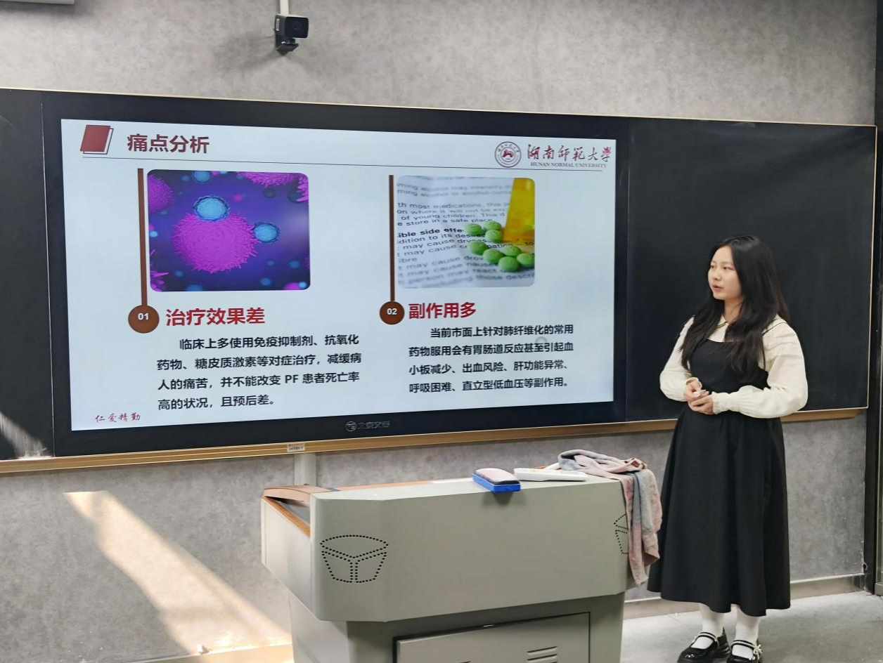 活动分为主持人介绍比赛规则、选手答辩和评委点评三个部分。主持人向参赛团队说明比赛规则,要求参赛团队在规定时间内进行作品的展示与答辩。参赛项目包括否极“肽”来,基于新型多功能抗菌肽Ly(PEG)-1的抗菌药物研发与推广,鲵源焕生,菌益未来等。队伍负责人立足行业发展趋势,秉持目标导向原则,综合考量资金投入等要素,详细阐述本队项目内容。同时,负责人紧密结合调研成果与实践经验,深入解读项目的研发历程、技术创新点、市场存在的缺口以及蕴含的商业前景。评委老师则从负责人语言表达的逻辑性、项目潜在的隐患与不足等方面进行专业点评,并提出切实可行的建议。