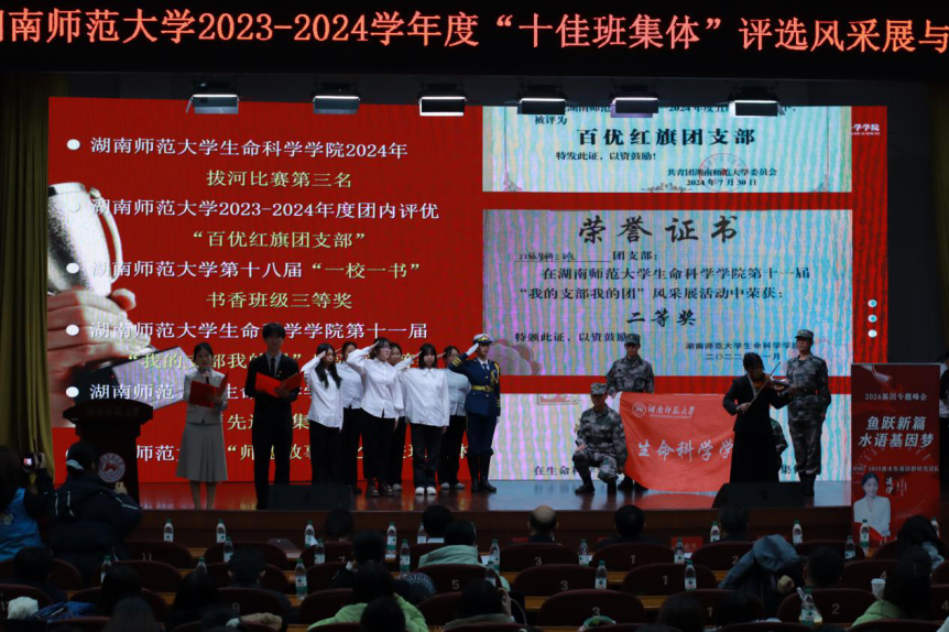 经专家评委和学生评审团现场打分,生科院2022级生物科学03班以90.98分荣获2023-2024年度“十佳班集体”荣誉称号。