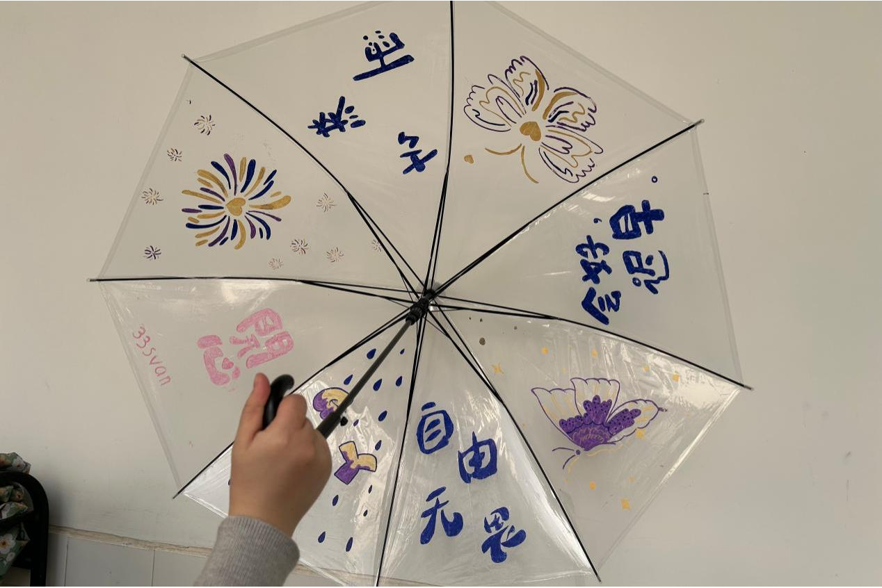 社团成员在透明伞上绘制