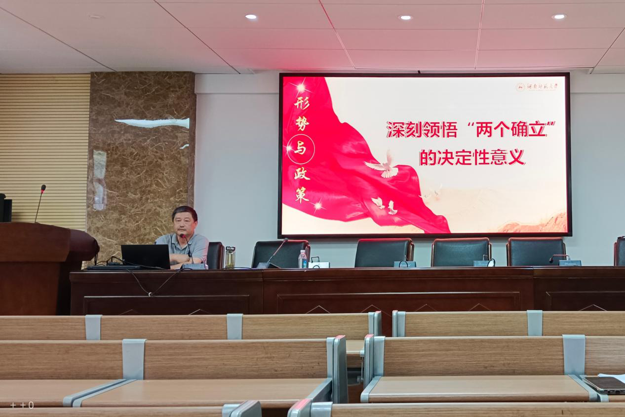(通讯员 周佳琳 毛烨宇 龙欣然)6月7日中午,sunbet申搏于生科院3号楼B307学术报告厅开展“深刻领悟‘两个确立’的决定性意义”主题形势与政策课程。院正处级专职组织员蒋能胜担任此次课程授课人。