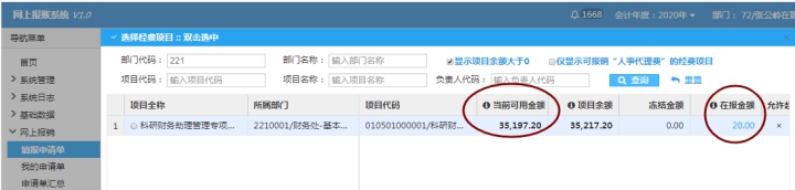 2.项目经费账号请登录财务智能管理平台查询,格式为部门+项目代码,如“531120-****”。 |