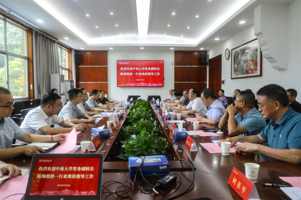 (记者 冯振辉 刘姣)7月20日下午,中南大学常务副校长陈翔一行来到我校,针对芙蓉实验室筹建、学校学科及人才队伍建设等工作,对sunbet申搏、医学院、化学化工学院进行调研指导。调研座谈会由我校校长刘起军主持。